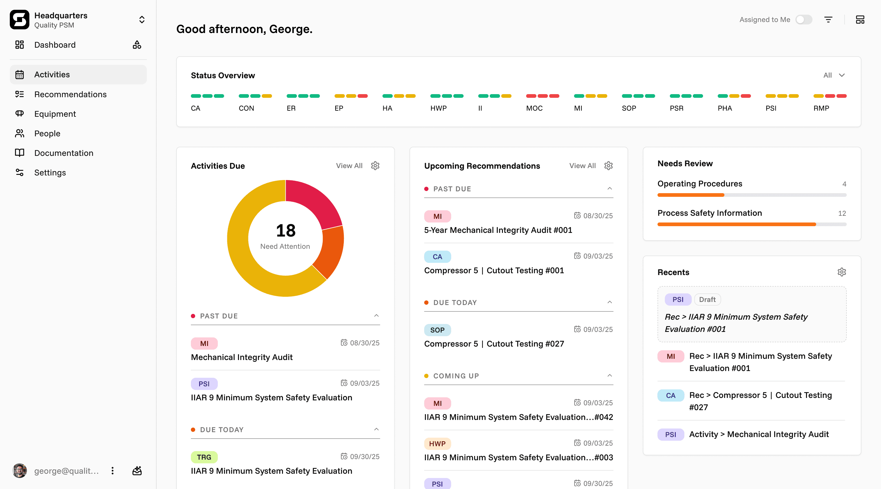 deadline, and open recommendation—across one facility or fifty. Filterable from a single site up to your entire organization.